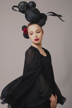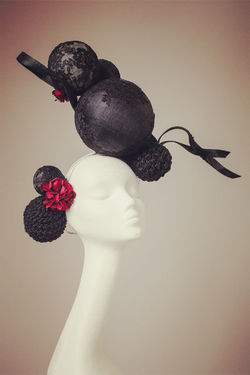 The title of this piece is Gisaeng 기생, which refers to the Korean geisha and literally means ‘art person’. This hat piece breaths traditional Korean feminine beauty, which in the old days was expressed through the graceful black wigs of the gisaeng.